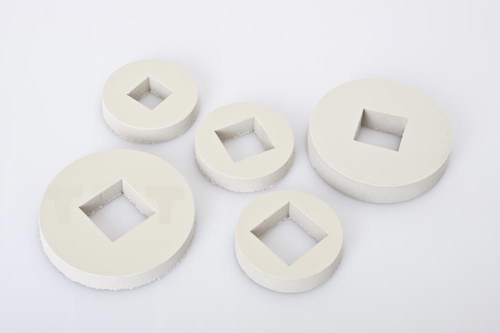 Diskové kartáče - tyto kartáče jsme schopni dodat v průměru až 650 mm těleso a 800 mm průměr výpletu. Do tělesa je vrtaný středový otvor pro vyrovnání ka několik šroubových otvorů pro uchycení kartáče na unašeč. Maximální délka vlákna je 350mm.