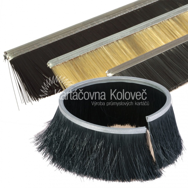 Kartáčové těsnící lišty jsou vyráběny zalisováním osazovacího materiálu do kovové pásky. Osazovací materiál je v pásce přeložen a uchycen pomocí nosného drátu.