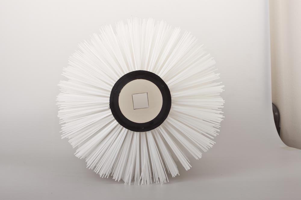 Diskové kartáče - tyto kartáče jsme schopni dodat v průměru až 650 mm těleso a 800 mm průměr výpletu. Do tělesa je vrtaný středový otvor pro vyrovnání ka několik šroubových otvorů pro uchycení kartáče na unašeč. Maximální délka vlákna je 350mm.