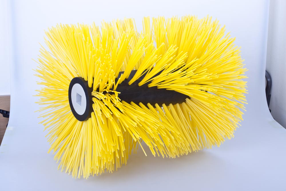 Válcové kartáče – tyto kartáče jsme schopni dodat v průměru až 850mm, do válcového tělese se vkládá čtvercová vložka. Většinou se dodávají kartáčové segmenty v délce cca 1000 mm, ze kterých se skládá kompletní kartáč.