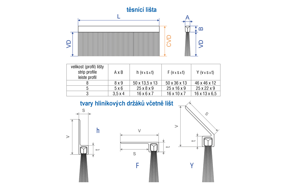 - Kartáčové těsnící lišty