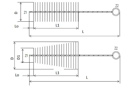 Tento typ kartáčů slouží k rozsáhlému množství aplikací, mezi než patří čištění válcových otvorů, průchozích či neprůchozích, čištění potrubí, ale také jako kartáče do filtračních zařízení. Dále je možné používat je s vhodným osazením k odjehlování vrtaných otvorů.